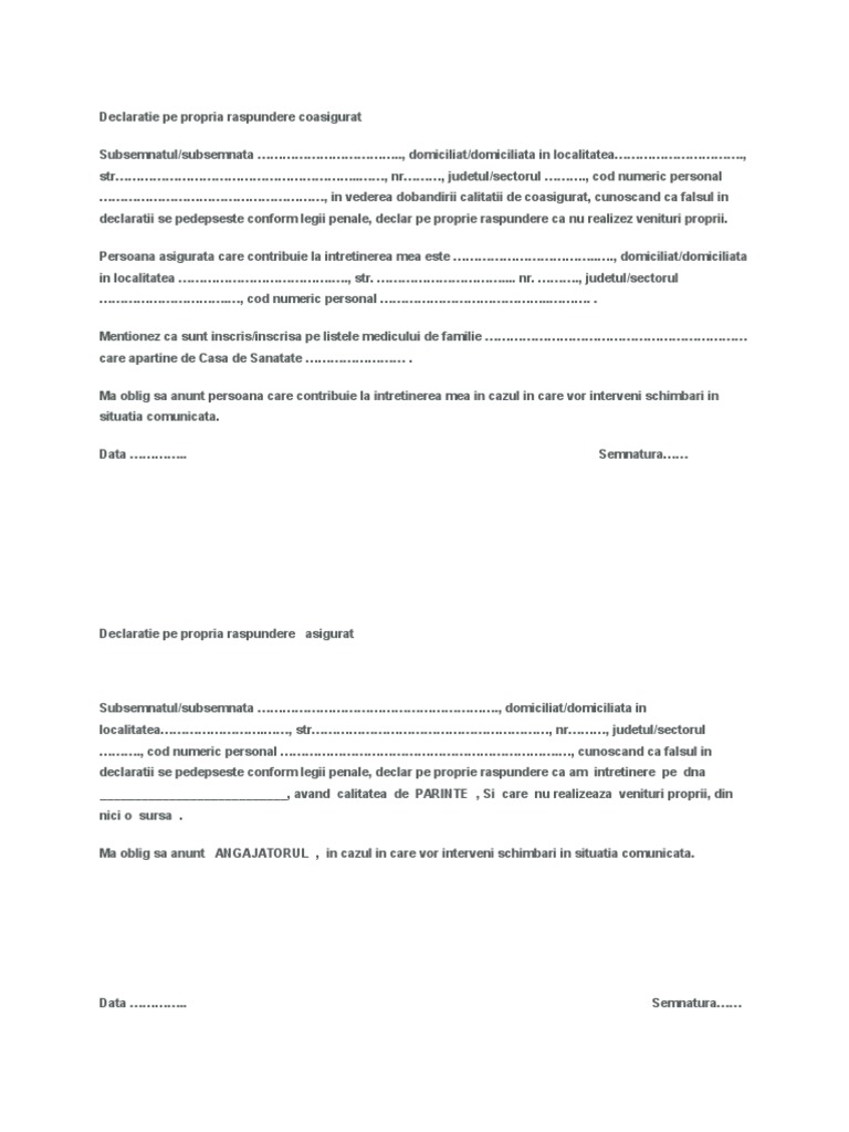 În privința prezentării declarației pe proprie răspundere/adeverinței eliberată de angajator personalului abilitat să verifice documentele, de pe dispozitive persoana va prezenta declarația pe proprie răspundere/adeverința de la angajator împreună cu actul de identitate, pe care personalul abilitat cu. Părinţii trebuie să semneze declaraţia pe propria răspundere, cunoscând prevederile art. Candidínd pentru funcția publică vacantă de.