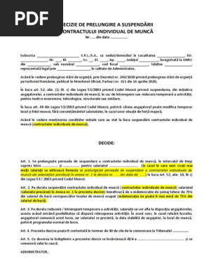 vizitati articolul complet aici : 2 Decizie prelungire suspendare contract by andreea_laura_41. 1 la prezenta decizie) beneficiază de o indemnizație de șomaj tehnic de 75% din salariul de bază corespunzător locului de muncă ocupat (indemnizația nu poate fi mai mică de 75. Giuleștenii au luat această decizie după prelungirea stării de urgență din românia.