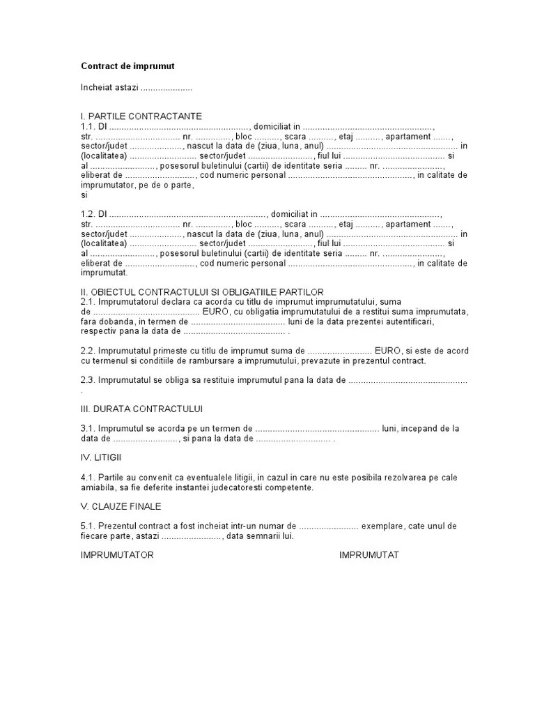Putem distinge intre societatile care contracteaza imprumuturi in scopul realizarii de investitii, spre exemplu in scopul crearii unei noi linii . Contract de împrumut "___" ______ 2021 mun. Interzise între persoanele afiliate şi nu pot fi considerate o gratuitate deoarece. De restituire a împrumutului, ca împrumutul să se restituie până la data de . Codul civil in articolul 867 nu face distinctie intre parti la contract, persoane fizice sau juridice.